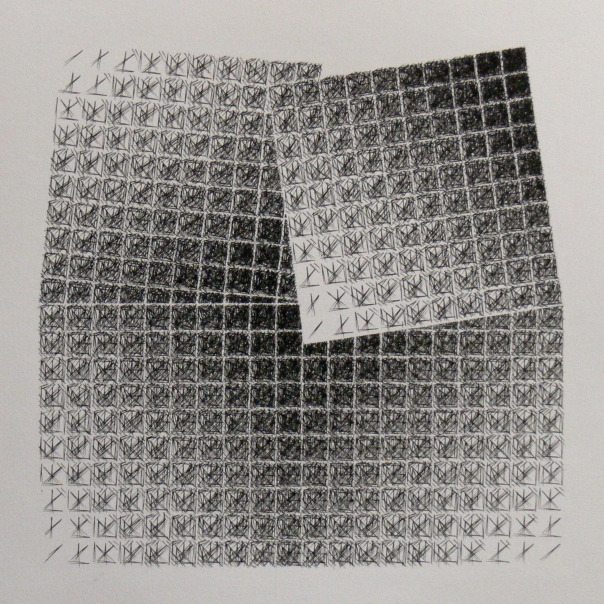 Avril 2020: Le module est composé de 100 cases. Comme pour les premiers essais chaque dessin comporte 4 modules. J'expérimente intuitivement différentes possibilités pour me rendre rapidement compte qu'une règle s'impose. Un ami me donne la solution: Il y a 256 possibilités. Pour chacune je réalise un montage numérique, puis j'assemble les résultats obtenus par quatre, par seize (1-16, 17-32, 33-48....241-256) par 64 et enfin j'obtiens le montage final, 16x16 modules.
